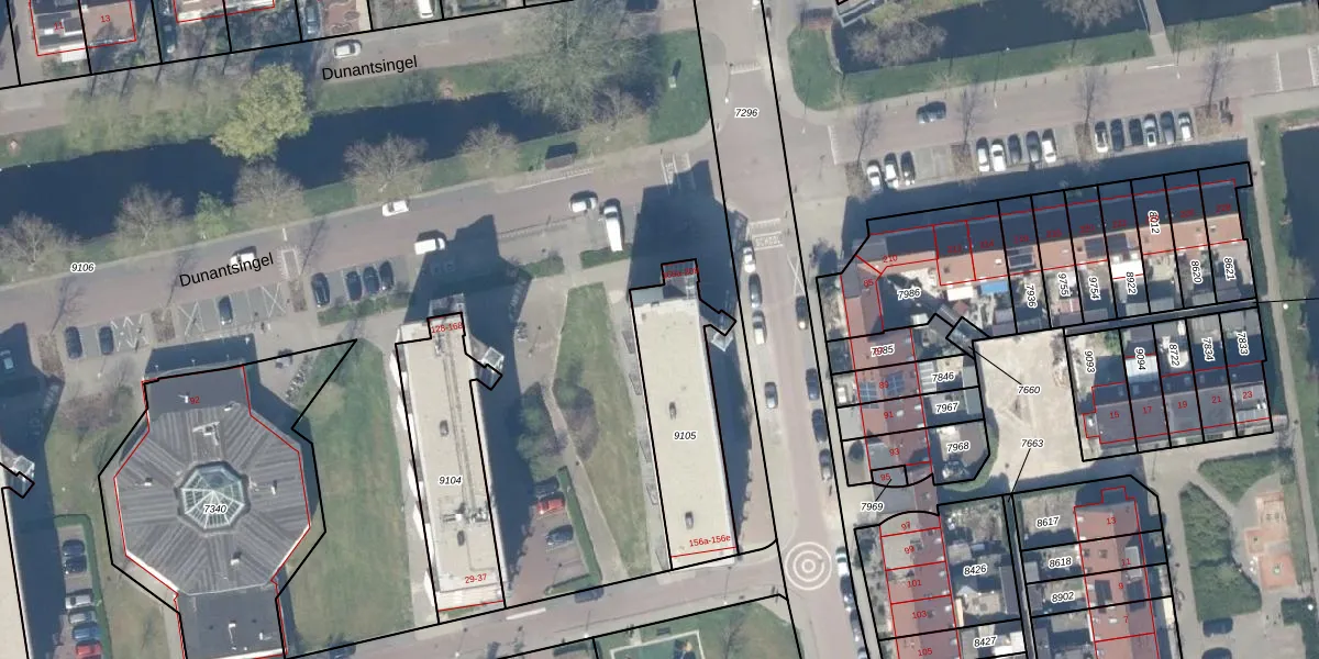 Dunantsingel 184 is gelegen op kadastraal perceel GDA01K9105. Deze kadastrale aanduiding is uniek en wordt gebruikt door het Kadaster om eigendomsrechten en andere zakelijke rechten vast te leggen. Het perceel maakt onderdeel uit van de kadastrale gemeente Gouda.