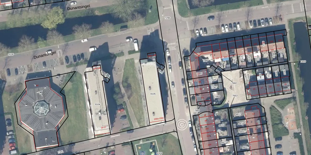 Dunantsingel 198 is gelegen op kadastraal perceel GDA01K9105. Deze kadastrale aanduiding is uniek en wordt gebruikt door het Kadaster om eigendomsrechten en andere zakelijke rechten vast te leggen. Het perceel maakt onderdeel uit van de kadastrale gemeente Gouda.