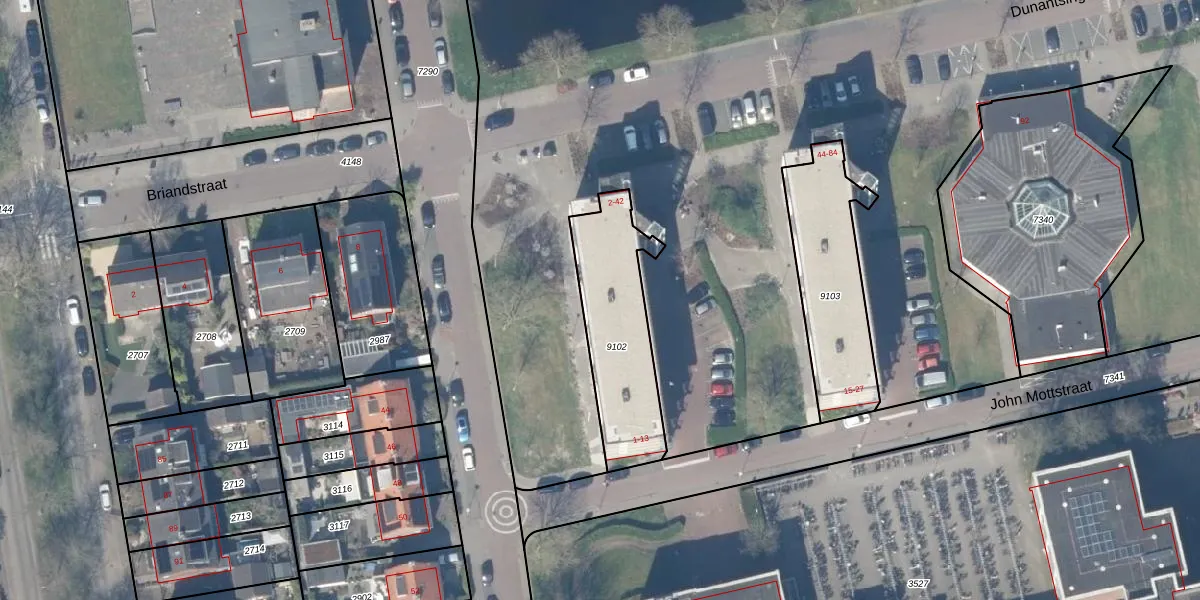 Dunantsingel 38 is gelegen op kadastraal perceel GDA01K9102. Deze kadastrale aanduiding is uniek en wordt gebruikt door het Kadaster om eigendomsrechten en andere zakelijke rechten vast te leggen. Het perceel maakt onderdeel uit van de kadastrale gemeente Gouda.