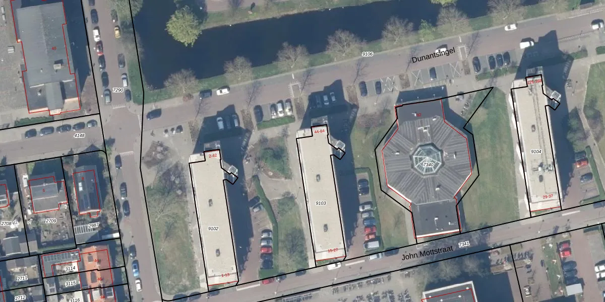 Dunantsingel 44 is gelegen op kadastraal perceel GDA01K9103. Deze kadastrale aanduiding is uniek en wordt gebruikt door het Kadaster om eigendomsrechten en andere zakelijke rechten vast te leggen. Het perceel maakt onderdeel uit van de kadastrale gemeente Gouda.