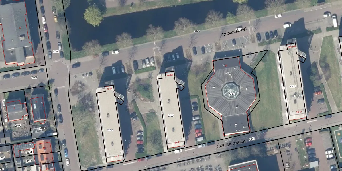 Dunantsingel 54 is gelegen op kadastraal perceel GDA01K9103. Deze kadastrale aanduiding is uniek en wordt gebruikt door het Kadaster om eigendomsrechten en andere zakelijke rechten vast te leggen. Het perceel maakt onderdeel uit van de kadastrale gemeente Gouda.