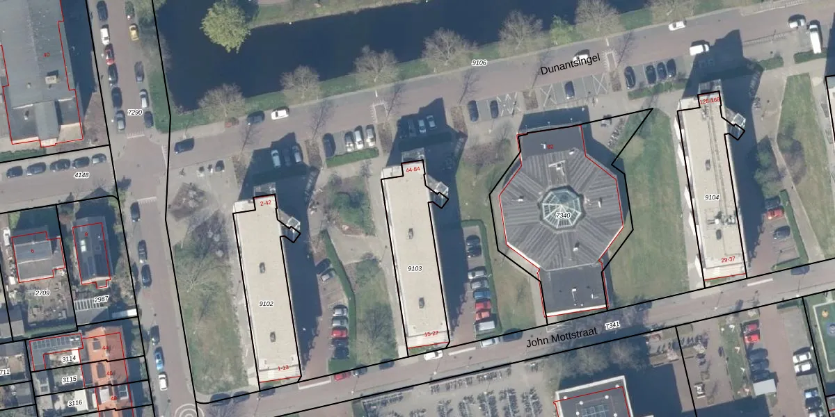 Dunantsingel 62 is gelegen op kadastraal perceel GDA01K9103. Deze kadastrale aanduiding is uniek en wordt gebruikt door het Kadaster om eigendomsrechten en andere zakelijke rechten vast te leggen. Het perceel maakt onderdeel uit van de kadastrale gemeente Gouda.