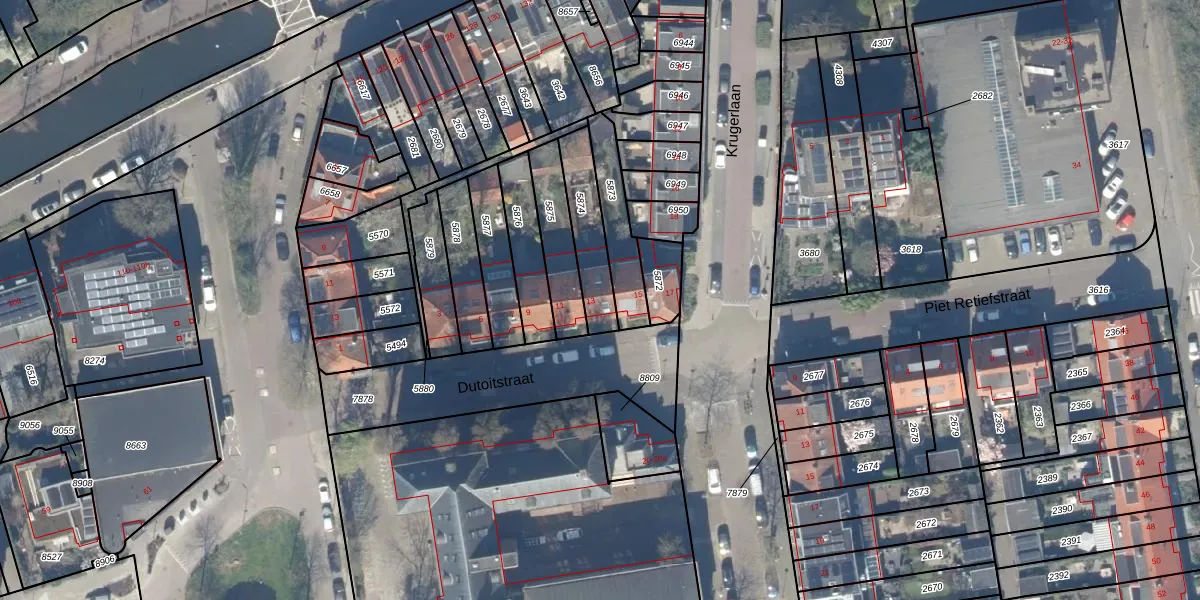 Gebruik de zoekbalk of klik op een perceel voor informatie over de adressen binnen dit perceel.