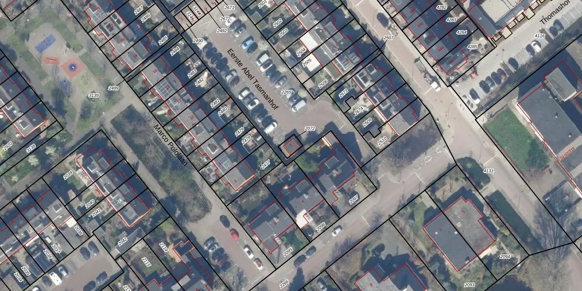 Gebruik de zoekbalk of klik op een perceel voor informatie over de adressen binnen dit perceel.