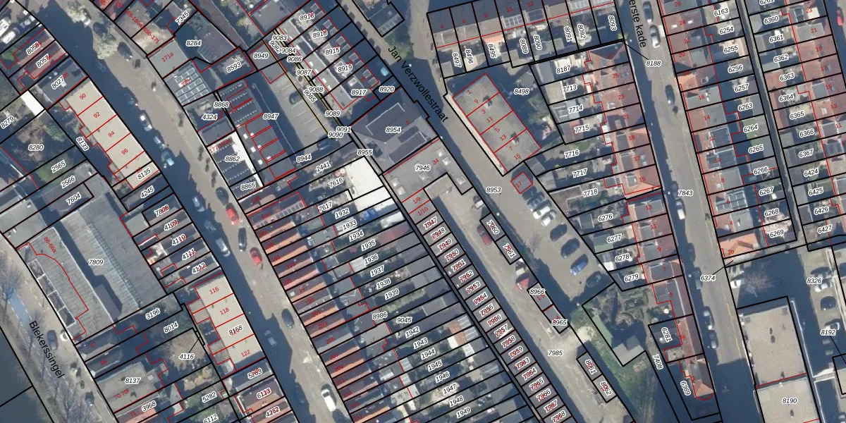 Het perceel waarop Eerste kade 1-10 staat heeft een oppervlakte van 190 m². Dit is een middelgroot perceel. De perceeloppervlakte wordt geregistreerd door het Kadaster. Gedetailleerde informatie over de maten van dit perceel kunt u vinden in het rapport Kadastrale kaart met maatvoering van Eerste kade 1-10.