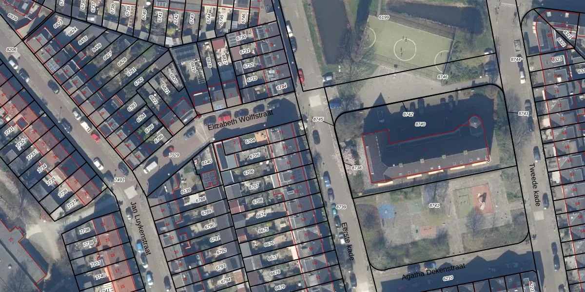 Het perceel waarop Eerste kade 69 staat heeft een oppervlakte van 178 m². Dit is een middelgroot perceel. De perceeloppervlakte wordt geregistreerd door het Kadaster. Gedetailleerde informatie over de maten van dit perceel kunt u vinden in het rapport Kadastrale kaart met maatvoering van Eerste kade 69.