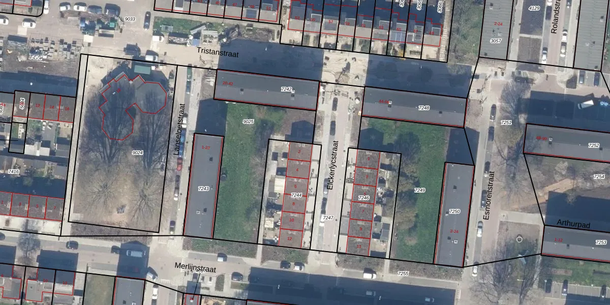 Het perceel waarop Elckerlycstraat 2 staat heeft een oppervlakte van 602 m². Dit is een groot perceel. De perceeloppervlakte wordt geregistreerd door het Kadaster. Gedetailleerde informatie over de maten van dit perceel kunt u vinden in het rapport Kadastrale kaart met maatvoering van Elckerlycstraat 2.