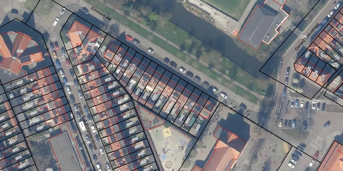 Emmastraat 11 is gelegen op kadastraal perceel GDA01F2011. Deze kadastrale aanduiding is uniek en wordt gebruikt door het Kadaster om eigendomsrechten en andere zakelijke rechten vast te leggen. Het perceel maakt onderdeel uit van de kadastrale gemeente Gouda.