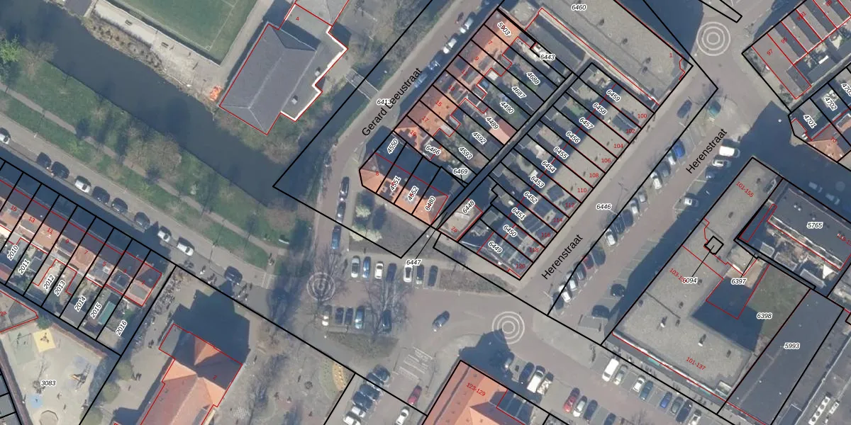 Gebruik de zoekbalk of klik op een perceel voor informatie over de adressen binnen dit perceel.