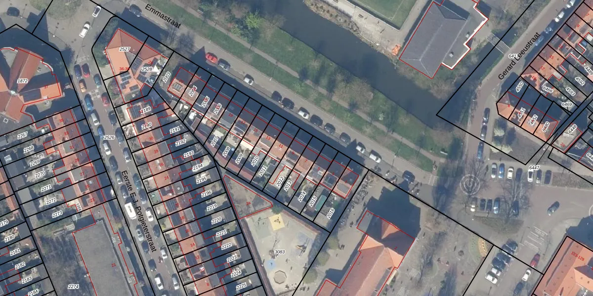 Het perceel waarop Emmastraat 9 staat heeft een oppervlakte van 125 m². Dit is een middelgroot perceel. De perceeloppervlakte wordt geregistreerd door het Kadaster. Gedetailleerde informatie over de maten van dit perceel kunt u vinden in het rapport Kadastrale kaart met maatvoering van Emmastraat 9.