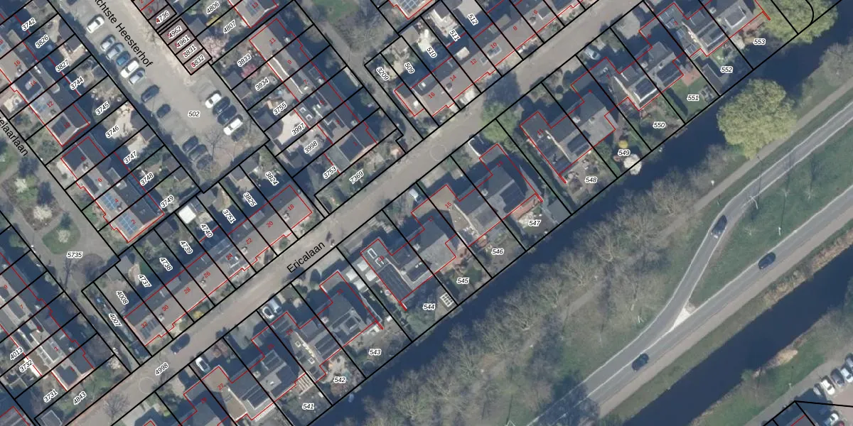 Het perceel waarop Ericalaan 17 staat heeft een oppervlakte van 294 m². Dit is een middelgroot perceel. De perceeloppervlakte wordt geregistreerd door het Kadaster. Gedetailleerde informatie over de maten van dit perceel kunt u vinden in het rapport Kadastrale kaart met maatvoering van Ericalaan 17.