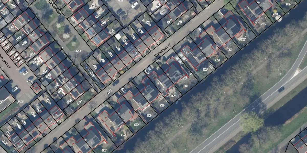 Het perceel waarop Ericalaan 23 staat heeft een oppervlakte van 294 m². Dit is een middelgroot perceel. De perceeloppervlakte wordt geregistreerd door het Kadaster. Gedetailleerde informatie over de maten van dit perceel kunt u vinden in het rapport Kadastrale kaart met maatvoering van Ericalaan 23.