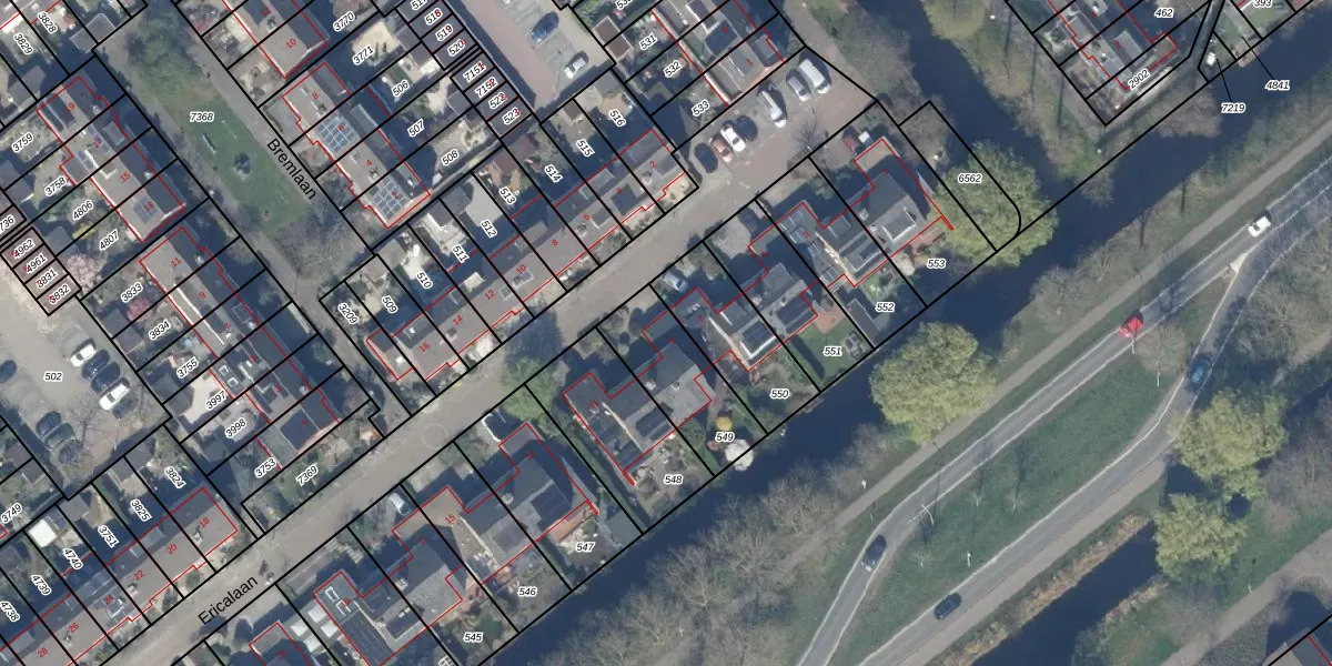 Ericalaan 9 is gelegen op kadastraal perceel GDA01M549. Deze kadastrale aanduiding is uniek en wordt gebruikt door het Kadaster om eigendomsrechten en andere zakelijke rechten vast te leggen. Het perceel maakt onderdeel uit van de kadastrale gemeente Gouda.