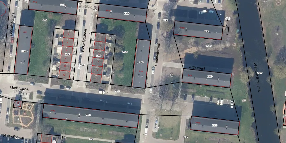 Esmoreitstraat 18 is gelegen op kadastraal perceel GDA01K7250. Deze kadastrale aanduiding is uniek en wordt gebruikt door het Kadaster om eigendomsrechten en andere zakelijke rechten vast te leggen. Het perceel maakt onderdeel uit van de kadastrale gemeente Gouda.