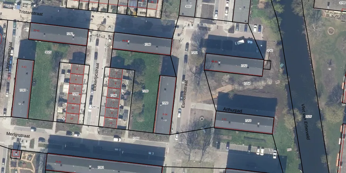 Esmoreitstraat 2 is gelegen op kadastraal perceel GDA01K7250. Deze kadastrale aanduiding is uniek en wordt gebruikt door het Kadaster om eigendomsrechten en andere zakelijke rechten vast te leggen. Het perceel maakt onderdeel uit van de kadastrale gemeente Gouda.