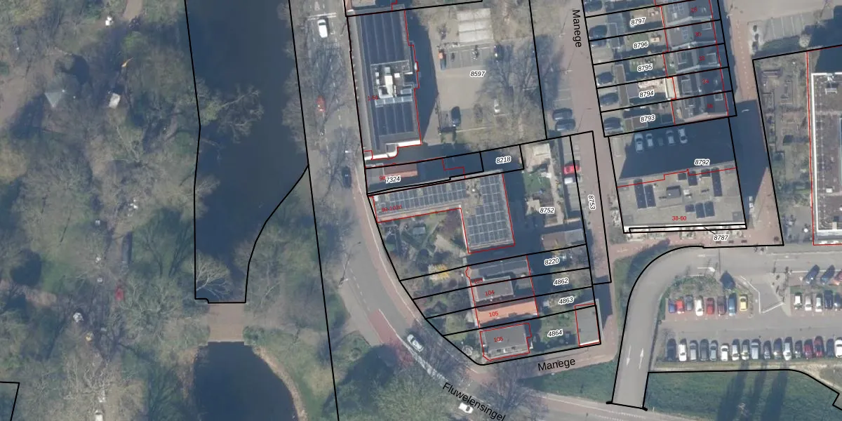 Het perceel waarop Fluwelensingel 100-a staat heeft een oppervlakte van 1055 m². Dit is een zeer groot perceel. De perceeloppervlakte wordt geregistreerd door het Kadaster. Gedetailleerde informatie over de maten van dit perceel kunt u vinden in het rapport Kadastrale kaart met maatvoering van Fluwelensingel 100-a.