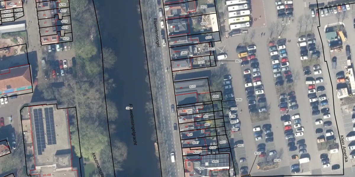 Fluwelensingel 45 is gelegen op kadastraal perceel GDA01A8103. Deze kadastrale aanduiding is uniek en wordt gebruikt door het Kadaster om eigendomsrechten en andere zakelijke rechten vast te leggen. Het perceel maakt onderdeel uit van de kadastrale gemeente Gouda.