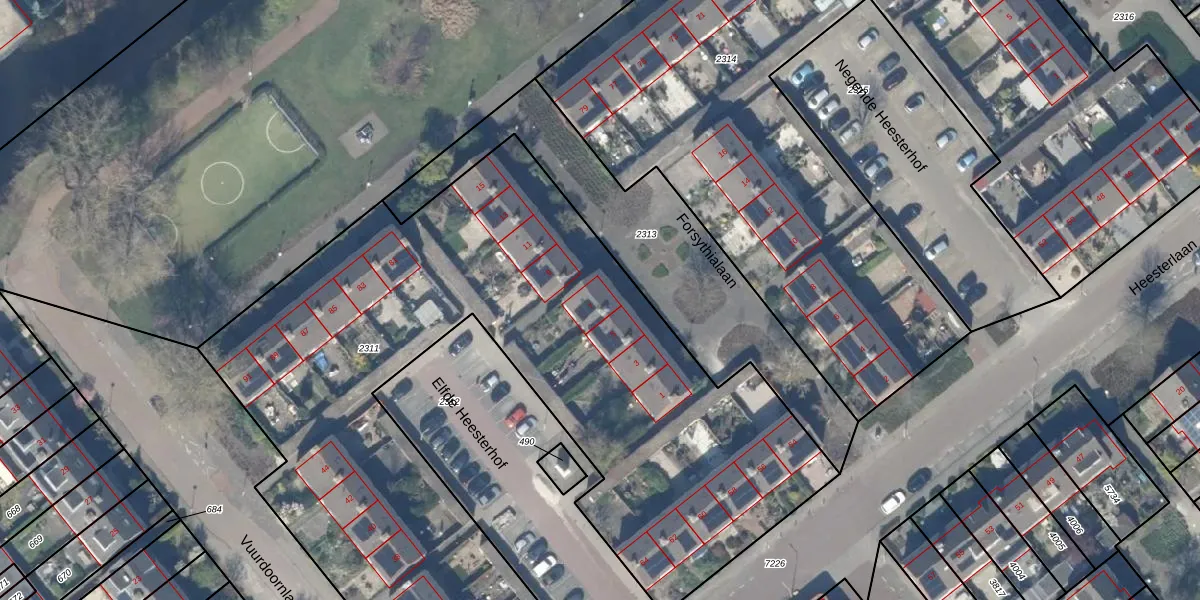 Forsythialaan 7 is gelegen op kadastraal perceel GDA01M2311. Deze kadastrale aanduiding is uniek en wordt gebruikt door het Kadaster om eigendomsrechten en andere zakelijke rechten vast te leggen. Het perceel maakt onderdeel uit van de kadastrale gemeente Gouda.