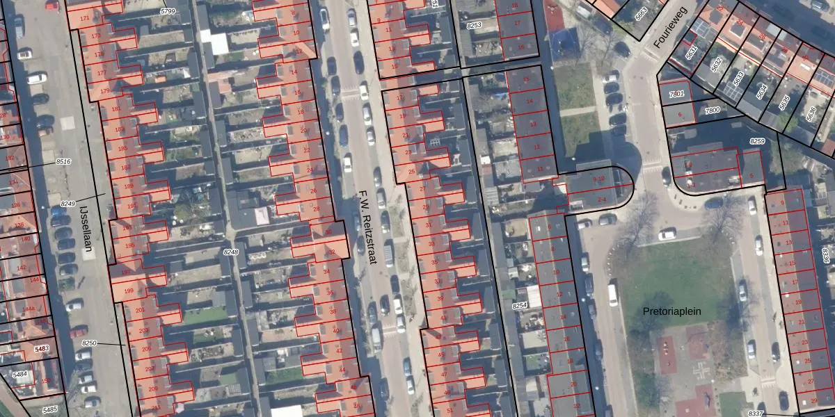 F.W. Reitzstraat 29 is gelegen op kadastraal perceel GDA01A8341. Deze kadastrale aanduiding is uniek en wordt gebruikt door het Kadaster om eigendomsrechten en andere zakelijke rechten vast te leggen. Het perceel maakt onderdeel uit van de kadastrale gemeente Gouda.