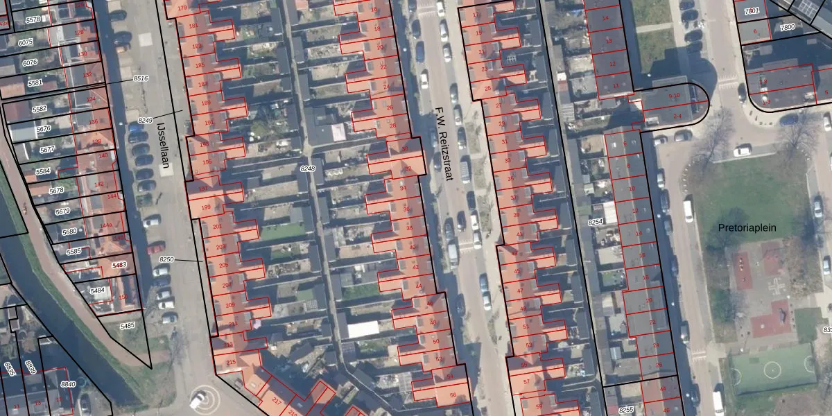 Het perceel waarop F.W. Reitzstraat 36 staat heeft een oppervlakte van 7830 m². Dit is een zeer groot perceel. De perceeloppervlakte wordt geregistreerd door het Kadaster. Gedetailleerde informatie over de maten van dit perceel kunt u vinden in het rapport Kadastrale kaart met maatvoering van F.W. Reitzstraat 36.