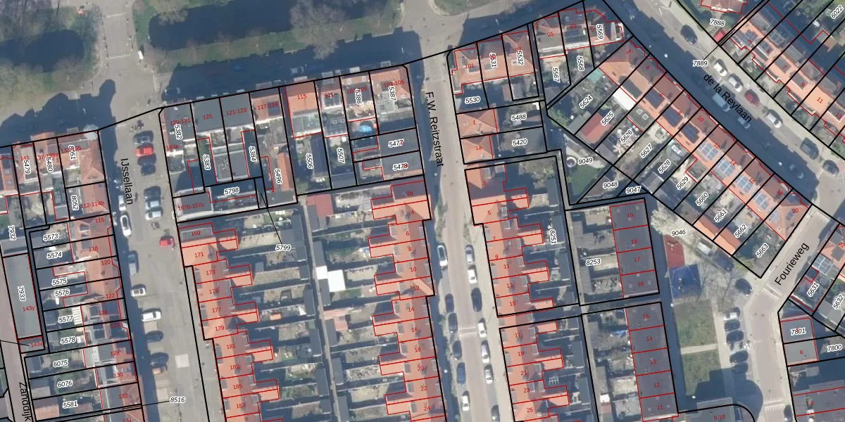 Het perceel waarop F.W. Reitzstraat 4 staat heeft een oppervlakte van 7830 m². Dit is een zeer groot perceel. De perceeloppervlakte wordt geregistreerd door het Kadaster. Gedetailleerde informatie over de maten van dit perceel kunt u vinden in het rapport Kadastrale kaart met maatvoering van F.W. Reitzstraat 4.