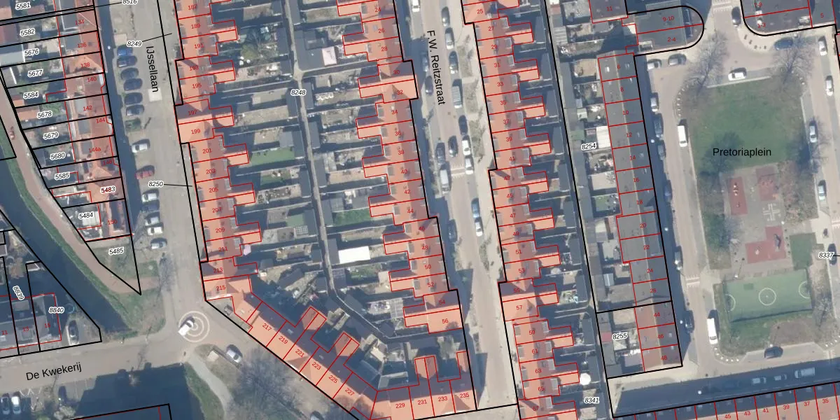 Het perceel waarop F.W. Reitzstraat 44 staat heeft een oppervlakte van 7830 m². Dit is een zeer groot perceel. De perceeloppervlakte wordt geregistreerd door het Kadaster. Gedetailleerde informatie over de maten van dit perceel kunt u vinden in het rapport Kadastrale kaart met maatvoering van F.W. Reitzstraat 44.