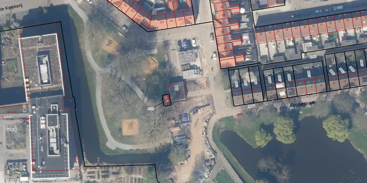 Gebruik de zoekbalk of klik op een perceel voor informatie over de adressen binnen dit perceel.