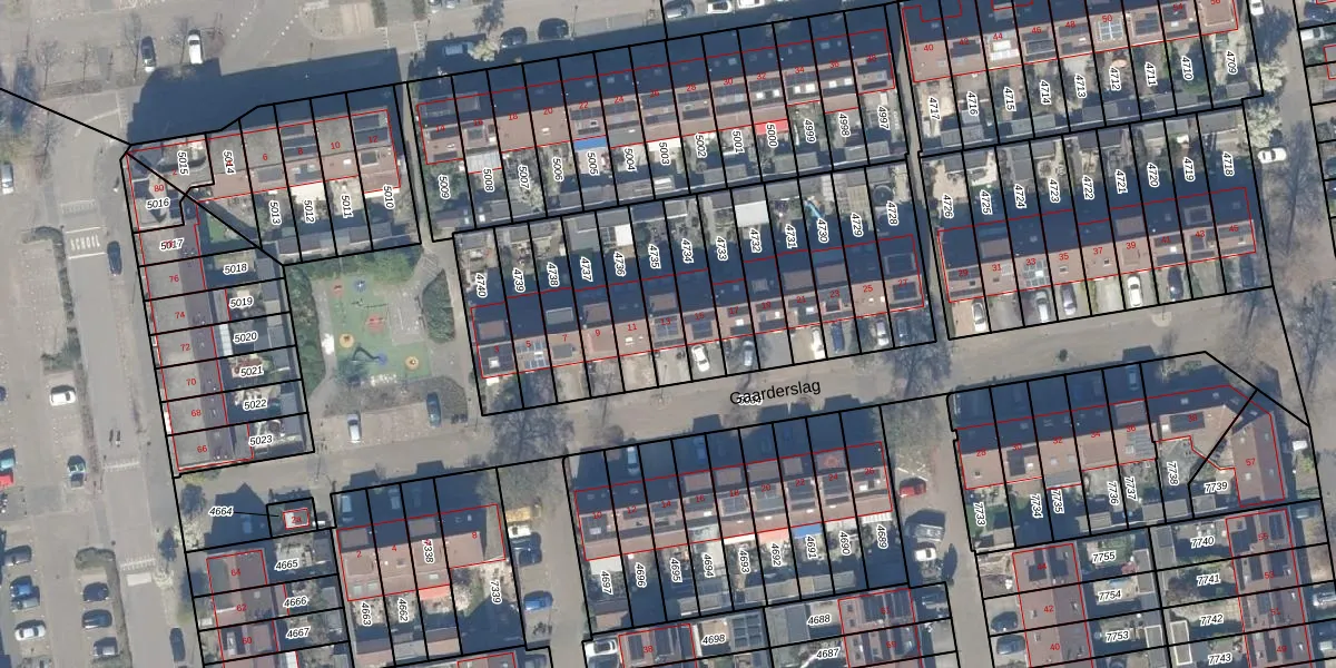 Gaarderslag 13 is gelegen op kadastraal perceel GDA01K4735. Deze kadastrale aanduiding is uniek en wordt gebruikt door het Kadaster om eigendomsrechten en andere zakelijke rechten vast te leggen. Het perceel maakt onderdeel uit van de kadastrale gemeente Gouda.