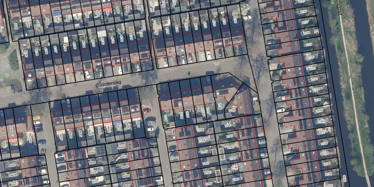 Gaarderslag 32 is gelegen op kadastraal perceel GDA01K7735. Deze kadastrale aanduiding is uniek en wordt gebruikt door het Kadaster om eigendomsrechten en andere zakelijke rechten vast te leggen. Het perceel maakt onderdeel uit van de kadastrale gemeente Gouda.
