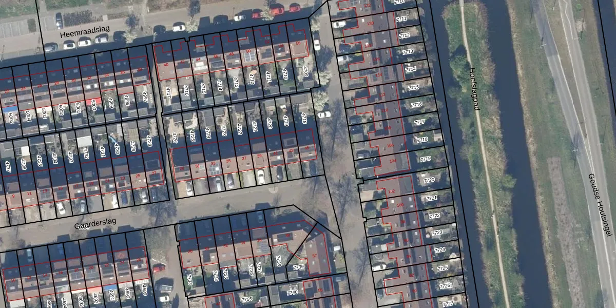 Gaarderslag 45 is gelegen op kadastraal perceel GDA01K4718. Deze kadastrale aanduiding is uniek en wordt gebruikt door het Kadaster om eigendomsrechten en andere zakelijke rechten vast te leggen. Het perceel maakt onderdeel uit van de kadastrale gemeente Gouda.