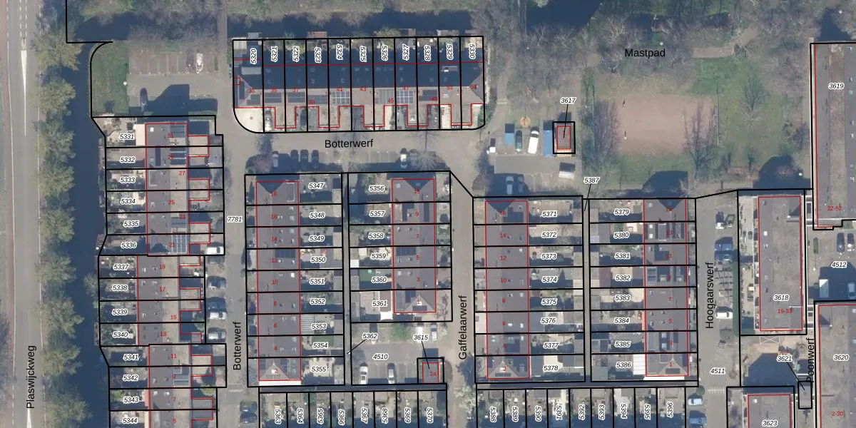 Het perceel waarop Gaffelaarwerf 9 staat heeft een oppervlakte van 121 m². Dit is een middelgroot perceel. De perceeloppervlakte wordt geregistreerd door het Kadaster. Gedetailleerde informatie over de maten van dit perceel kunt u vinden in het rapport Kadastrale kaart met maatvoering van Gaffelaarwerf 9.