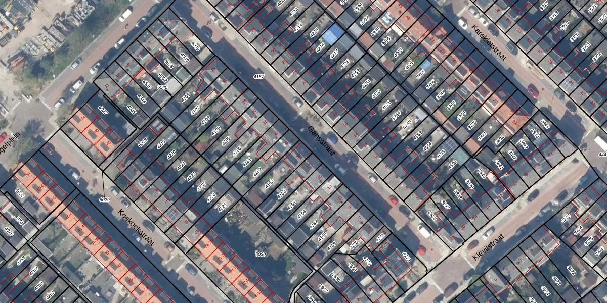 Gebruik de zoekbalk of klik op een perceel voor informatie over de adressen binnen dit perceel.