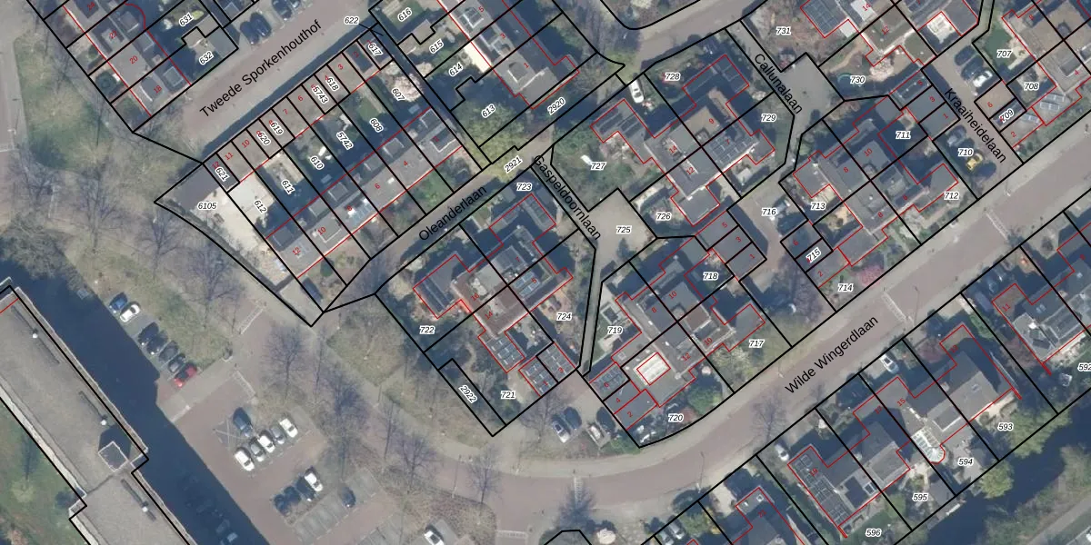 Gaspeldoornlaan 5 is gelegen op kadastraal perceel GDA01M724. Deze kadastrale aanduiding is uniek en wordt gebruikt door het Kadaster om eigendomsrechten en andere zakelijke rechten vast te leggen. Het perceel maakt onderdeel uit van de kadastrale gemeente Gouda.