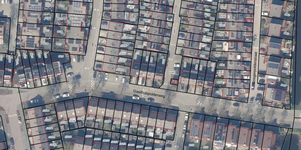 Gasthuispolderweg 21 is gelegen op kadastraal perceel GDA01K6256. Deze kadastrale aanduiding is uniek en wordt gebruikt door het Kadaster om eigendomsrechten en andere zakelijke rechten vast te leggen. Het perceel maakt onderdeel uit van de kadastrale gemeente Gouda.