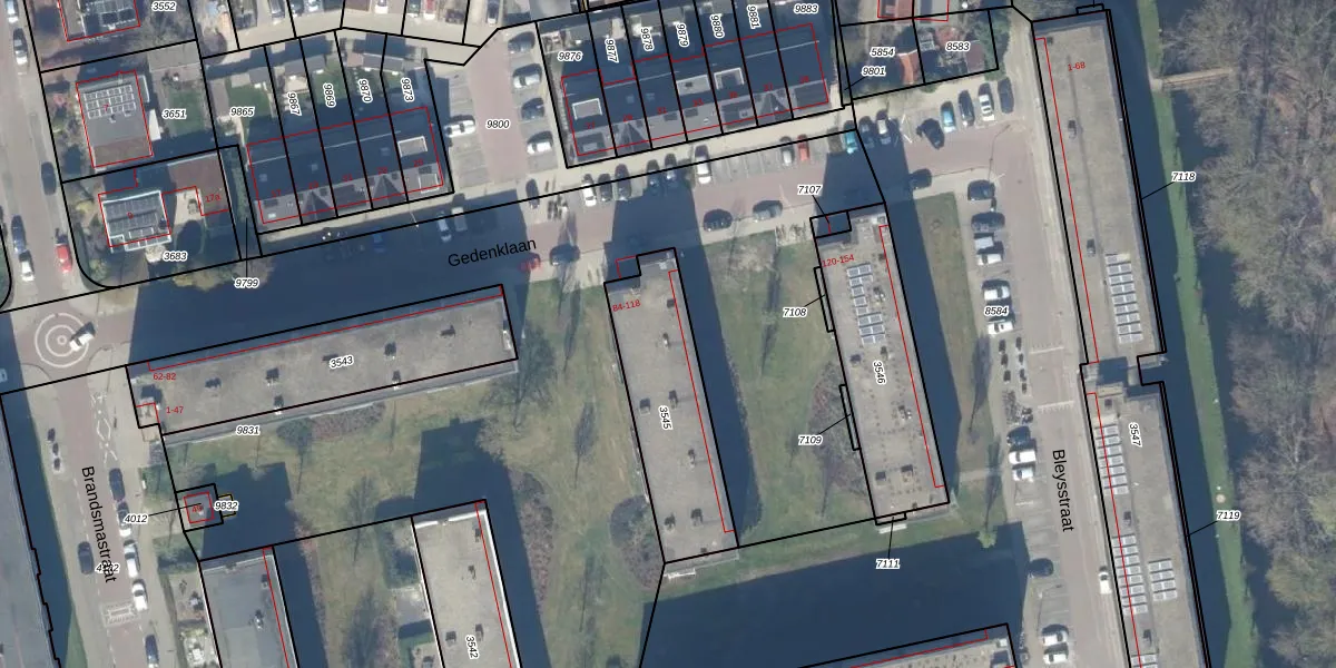 Gedenklaan 102 is gelegen op kadastraal perceel GDA01K3545. Deze kadastrale aanduiding is uniek en wordt gebruikt door het Kadaster om eigendomsrechten en andere zakelijke rechten vast te leggen. Het perceel maakt onderdeel uit van de kadastrale gemeente Gouda.