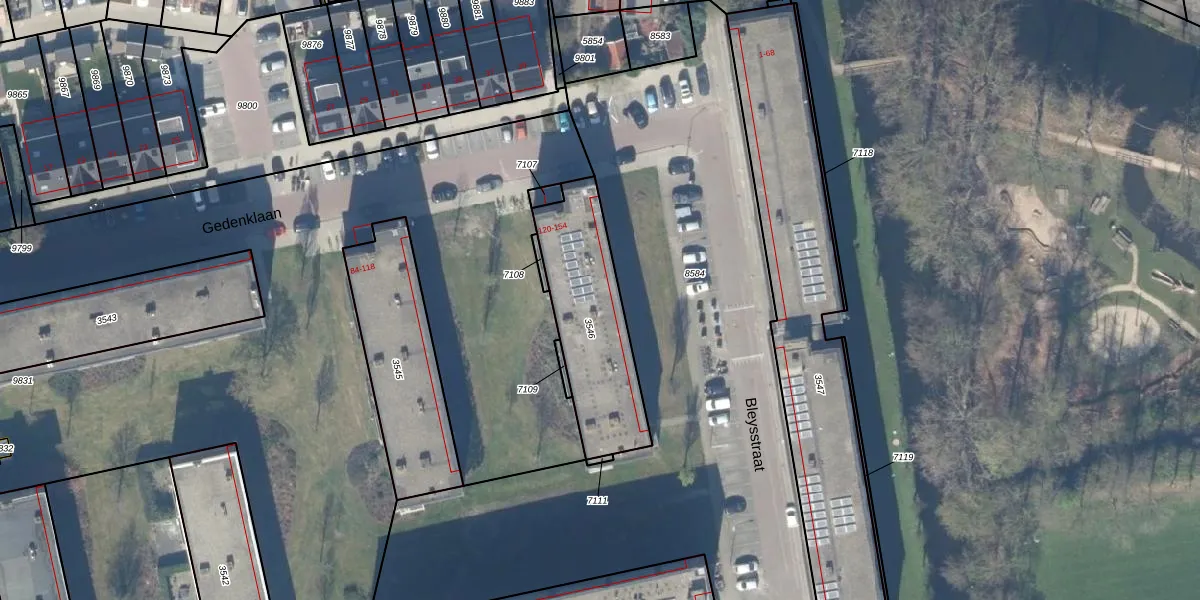 Gedenklaan 154 is gelegen op kadastraal perceel GDA01K3546. Deze kadastrale aanduiding is uniek en wordt gebruikt door het Kadaster om eigendomsrechten en andere zakelijke rechten vast te leggen. Het perceel maakt onderdeel uit van de kadastrale gemeente Gouda.