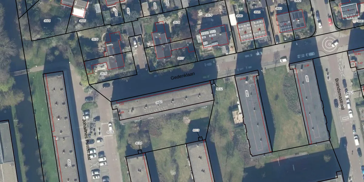 Gedenklaan 16 is gelegen op kadastraal perceel GDA01K3582. Deze kadastrale aanduiding is uniek en wordt gebruikt door het Kadaster om eigendomsrechten en andere zakelijke rechten vast te leggen. Het perceel maakt onderdeel uit van de kadastrale gemeente Gouda.