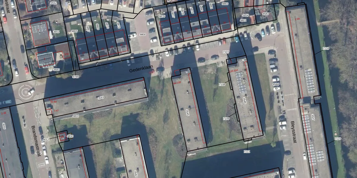 Gedenklaan 96 is gelegen op kadastraal perceel GDA01K3545. Deze kadastrale aanduiding is uniek en wordt gebruikt door het Kadaster om eigendomsrechten en andere zakelijke rechten vast te leggen. Het perceel maakt onderdeel uit van de kadastrale gemeente Gouda.