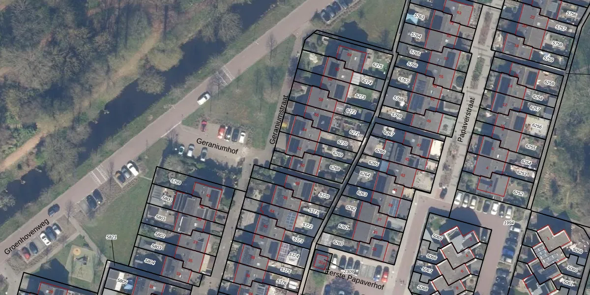 Het perceel waarop Geraniumstraat 52 staat heeft een oppervlakte van 141 m². Dit is een middelgroot perceel. De perceeloppervlakte wordt geregistreerd door het Kadaster. Gedetailleerde informatie over de maten van dit perceel kunt u vinden in het rapport Kadastrale kaart met maatvoering van Geraniumstraat 52.