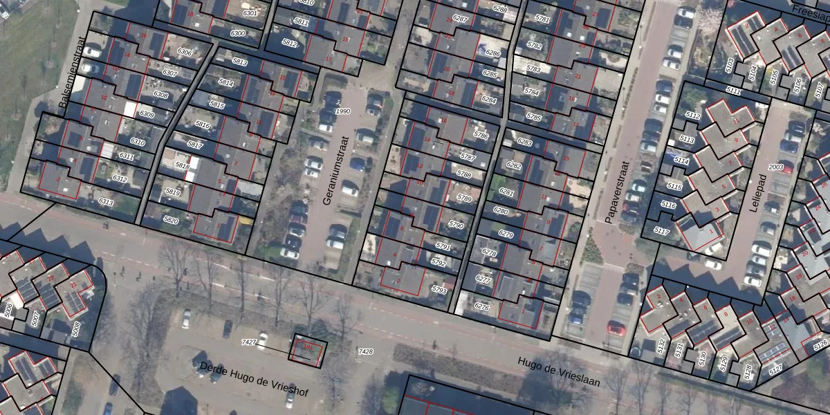 Gebruik de zoekbalk of klik op een perceel voor informatie over de adressen binnen dit perceel.