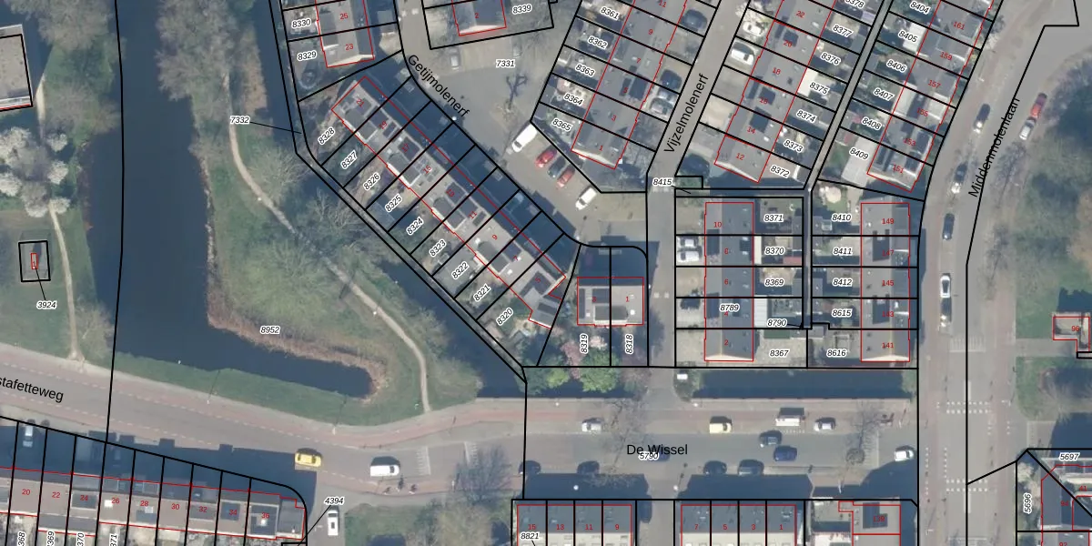 Gebruik de zoekbalk of klik op een perceel voor informatie over de adressen binnen dit perceel.
