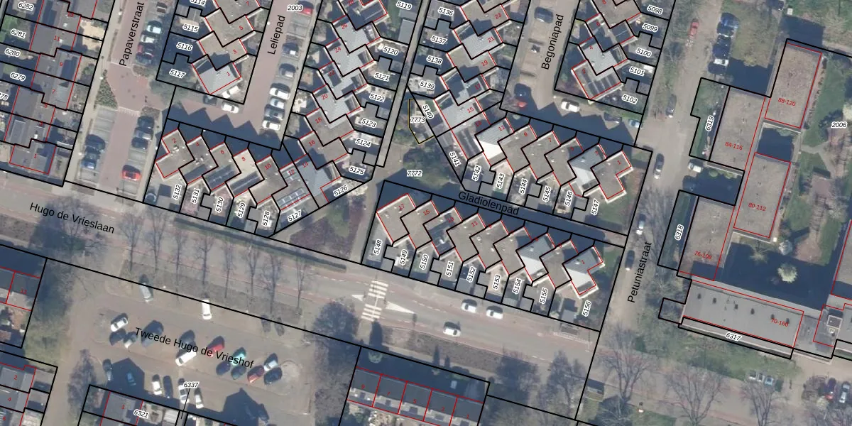 Gebruik de zoekbalk of klik op een perceel voor informatie over de adressen binnen dit perceel.