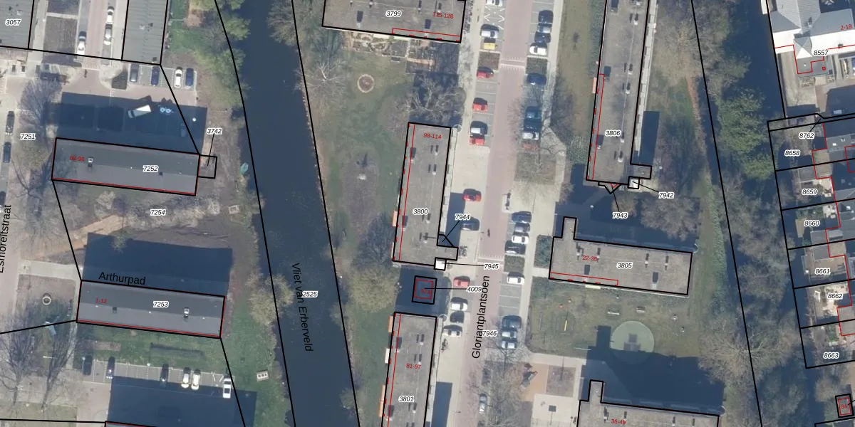 Gloriantplantsoen 103 is gelegen op kadastraal perceel GDA01K3800. Deze kadastrale aanduiding is uniek en wordt gebruikt door het Kadaster om eigendomsrechten en andere zakelijke rechten vast te leggen. Het perceel maakt onderdeel uit van de kadastrale gemeente Gouda.