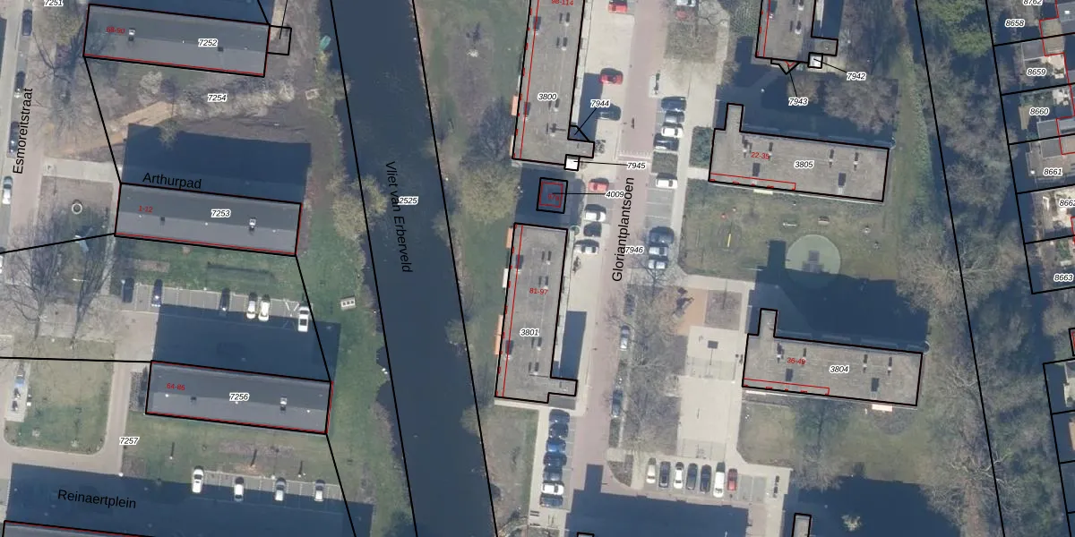 Gloriantplantsoen 96 is gelegen op kadastraal perceel GDA01K3801. Deze kadastrale aanduiding is uniek en wordt gebruikt door het Kadaster om eigendomsrechten en andere zakelijke rechten vast te leggen. Het perceel maakt onderdeel uit van de kadastrale gemeente Gouda.
