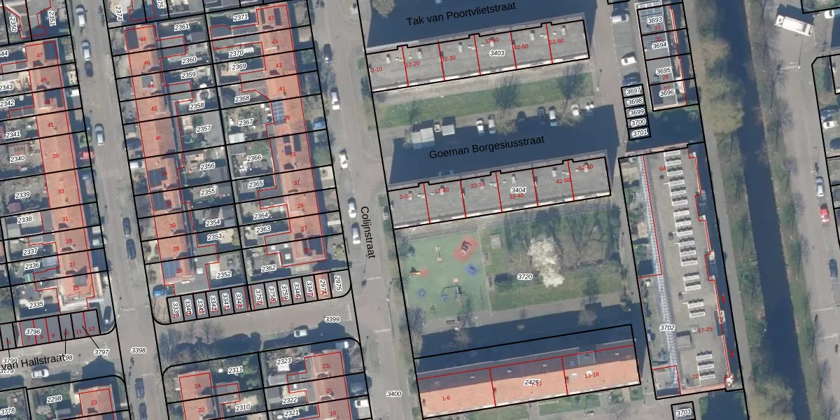 Goeman Borgesiusstraat 10 is gelegen op kadastraal perceel GDA01I3404. Deze kadastrale aanduiding is uniek en wordt gebruikt door het Kadaster om eigendomsrechten en andere zakelijke rechten vast te leggen. Het perceel maakt onderdeel uit van de kadastrale gemeente Gouda.
