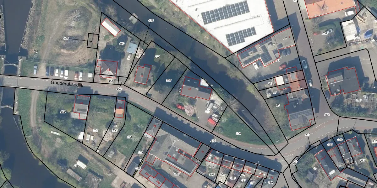 Gouderaksedijk 10 is gelegen op kadastraal perceel GDA01L101. Deze kadastrale aanduiding is uniek en wordt gebruikt door het Kadaster om eigendomsrechten en andere zakelijke rechten vast te leggen. Het perceel maakt onderdeel uit van de kadastrale gemeente Gouda.