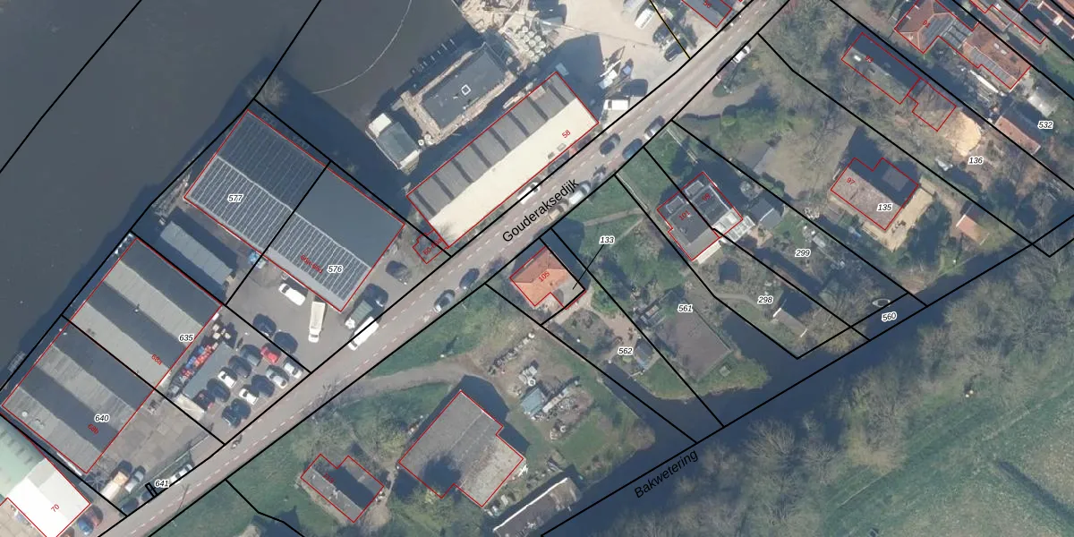 Gouderaksedijk 105 is gelegen op kadastraal perceel GDA01L133. Deze kadastrale aanduiding is uniek en wordt gebruikt door het Kadaster om eigendomsrechten en andere zakelijke rechten vast te leggen. Het perceel maakt onderdeel uit van de kadastrale gemeente Gouda.