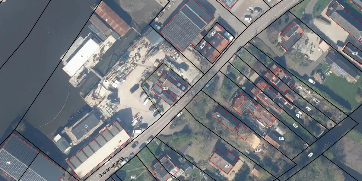 Gouderaksedijk 52 is gelegen op kadastraal perceel GDA01L695. Deze kadastrale aanduiding is uniek en wordt gebruikt door het Kadaster om eigendomsrechten en andere zakelijke rechten vast te leggen. Het perceel maakt onderdeel uit van de kadastrale gemeente Gouda.