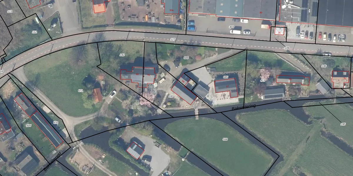 Het perceel waarop Gouderaksedijk 59 staat heeft een oppervlakte van 746 m². Dit is een groot perceel. De perceeloppervlakte wordt geregistreerd door het Kadaster. Gedetailleerde informatie over de maten van dit perceel kunt u vinden in het rapport Kadastrale kaart met maatvoering van Gouderaksedijk 59.