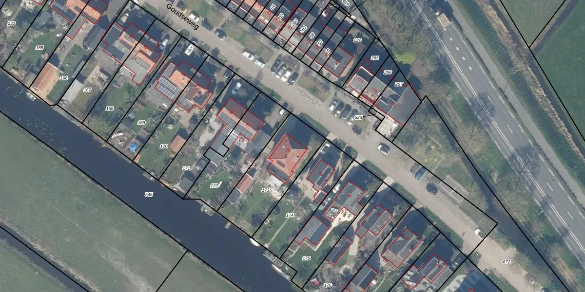 Goudseweg 42 is gelegen op kadastraal perceel GDA01L173. Deze kadastrale aanduiding is uniek en wordt gebruikt door het Kadaster om eigendomsrechten en andere zakelijke rechten vast te leggen. Het perceel maakt onderdeel uit van de kadastrale gemeente Gouda.